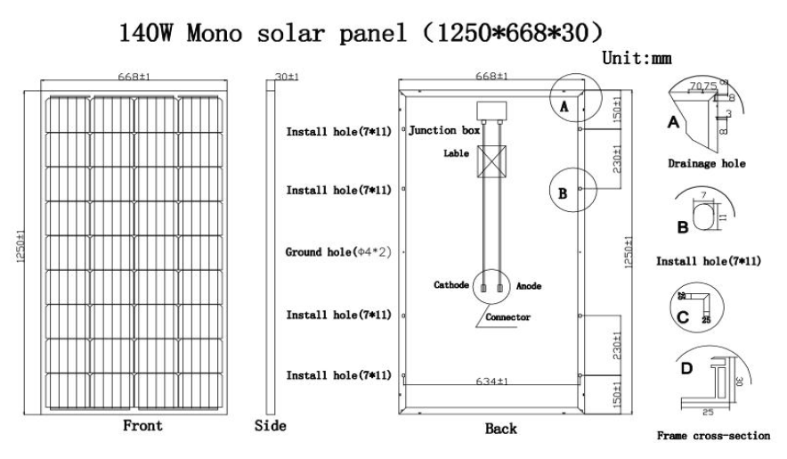 Le celle dei pannelli fotovoltaici policristallini ad alto rendimento sono di prima qualità, i vetri sono antiriflesso ad elevata trasmittanza e i telai sono in alluminio anodizzato. I fori di fissaggio nel retro del pannello consentono una facile installazione.
