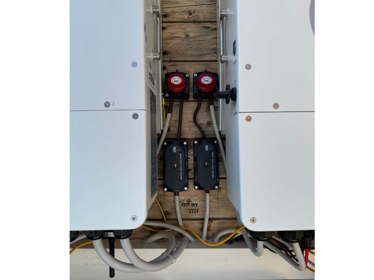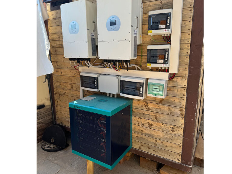 The photovoltaic panels are managed by two three-phase 10kW Deye inverters that work in parallel to guarantee the 20kW needed for the plant.